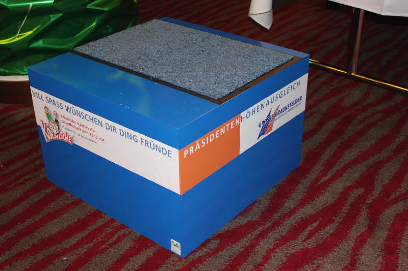 Er hatte auf einer anderen Sitzung wohl einen Redner gesehen, der von einem Podest zum Publikum sprach - und angemerkt, dass er so ein Podest auch gebrauchen könnte. Und dies hatten Mitglieder der Kölnische K.G. gehört, und schon war die Idee zur Überraschung geboren.
