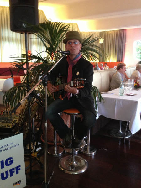 Ein ganz besonderes Erlebnis war der als Meister der leisen Töne bekannte und extra aus New York angereiste Gitarrist Andy Clayburn! Zu späterer Stunde sah man Erry Stoklosa und Andy Clayburn gemeinsam am Mikrophon. Zwischendurch wurden die Gäste von Big Stuff, einer Big Band aus Wipperfürth, klangvoll unterhalten.